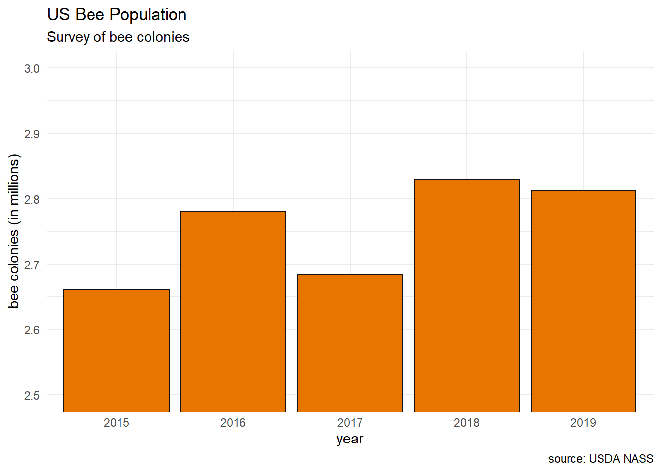 y = "bee colonies (in millions)") +