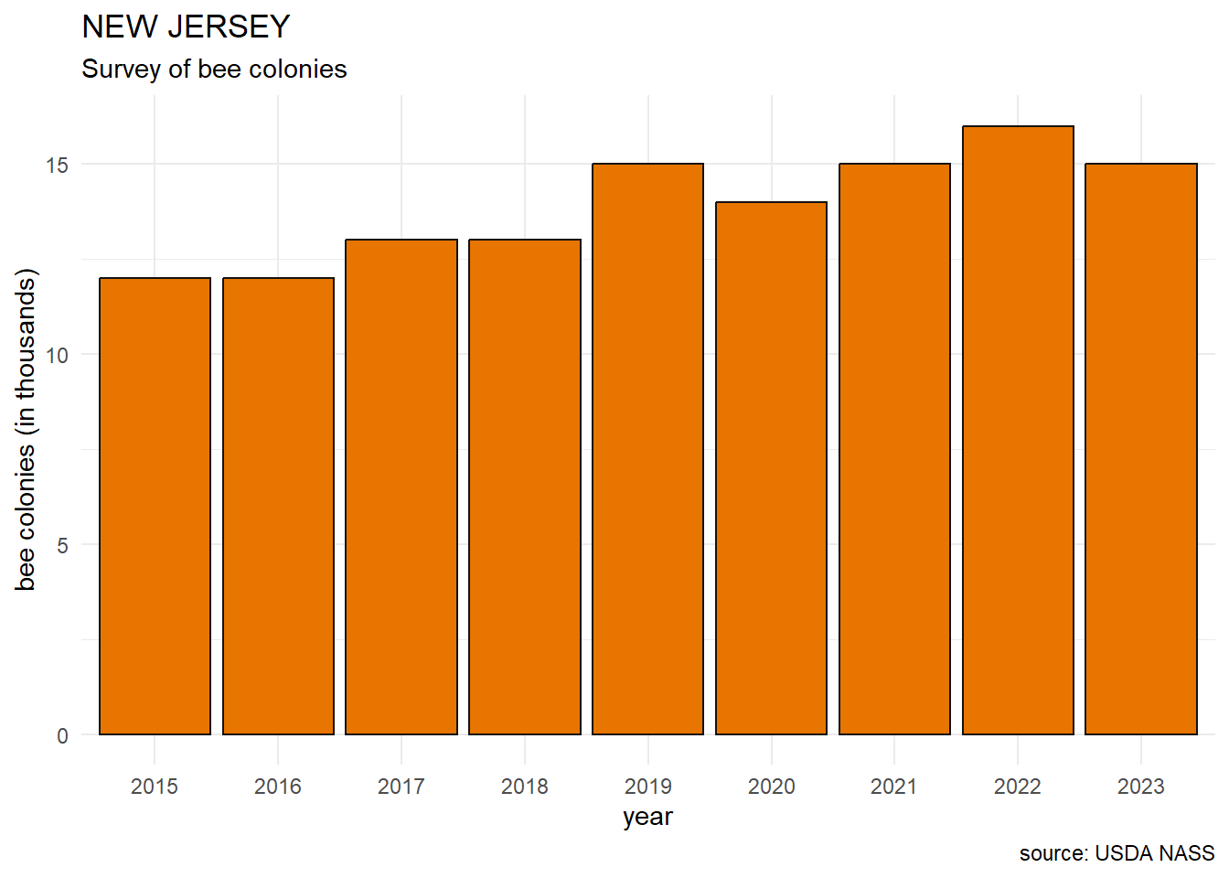 y = "bee colonies (in thousands)") +